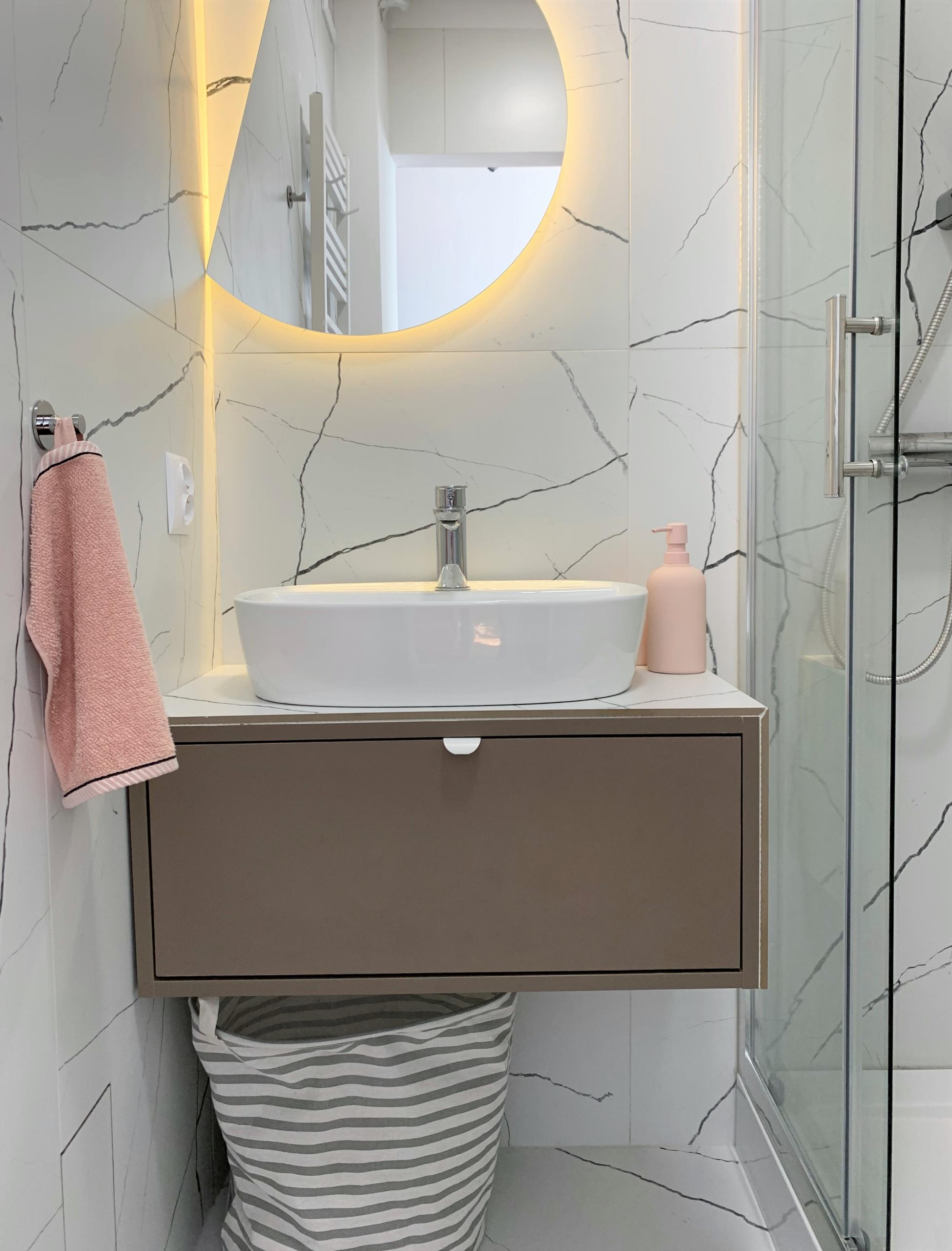 Funkcjonalna kawalerka w Słupsku. Projekt wymagał zmiany układu pomieszczeń tak, aby maksymalnie wykorzystać potencjał tego typowego dla wielkiej płyty 26-metrowego mieszkania. Aranżacja dla młodej, energicznej osoby.