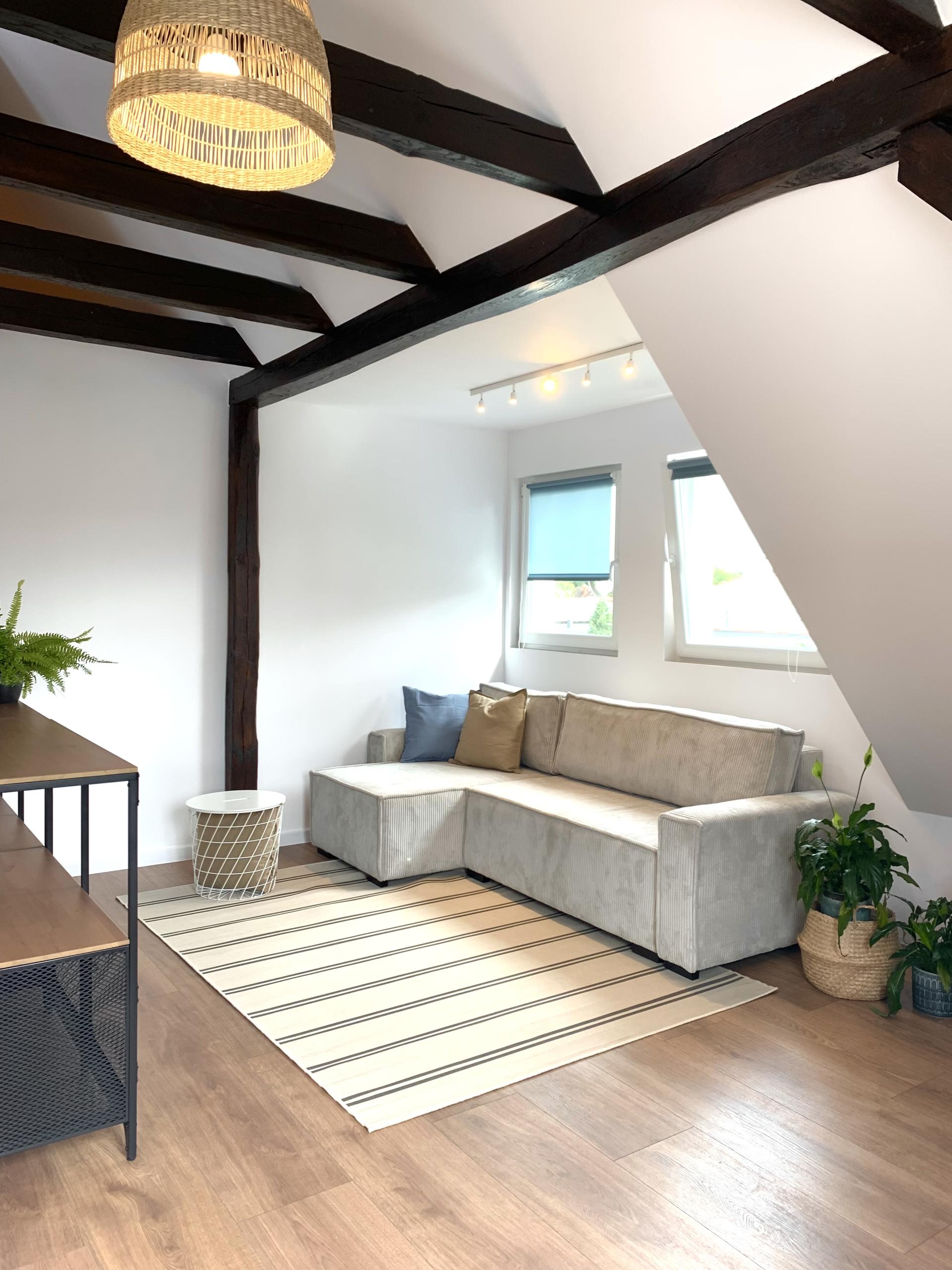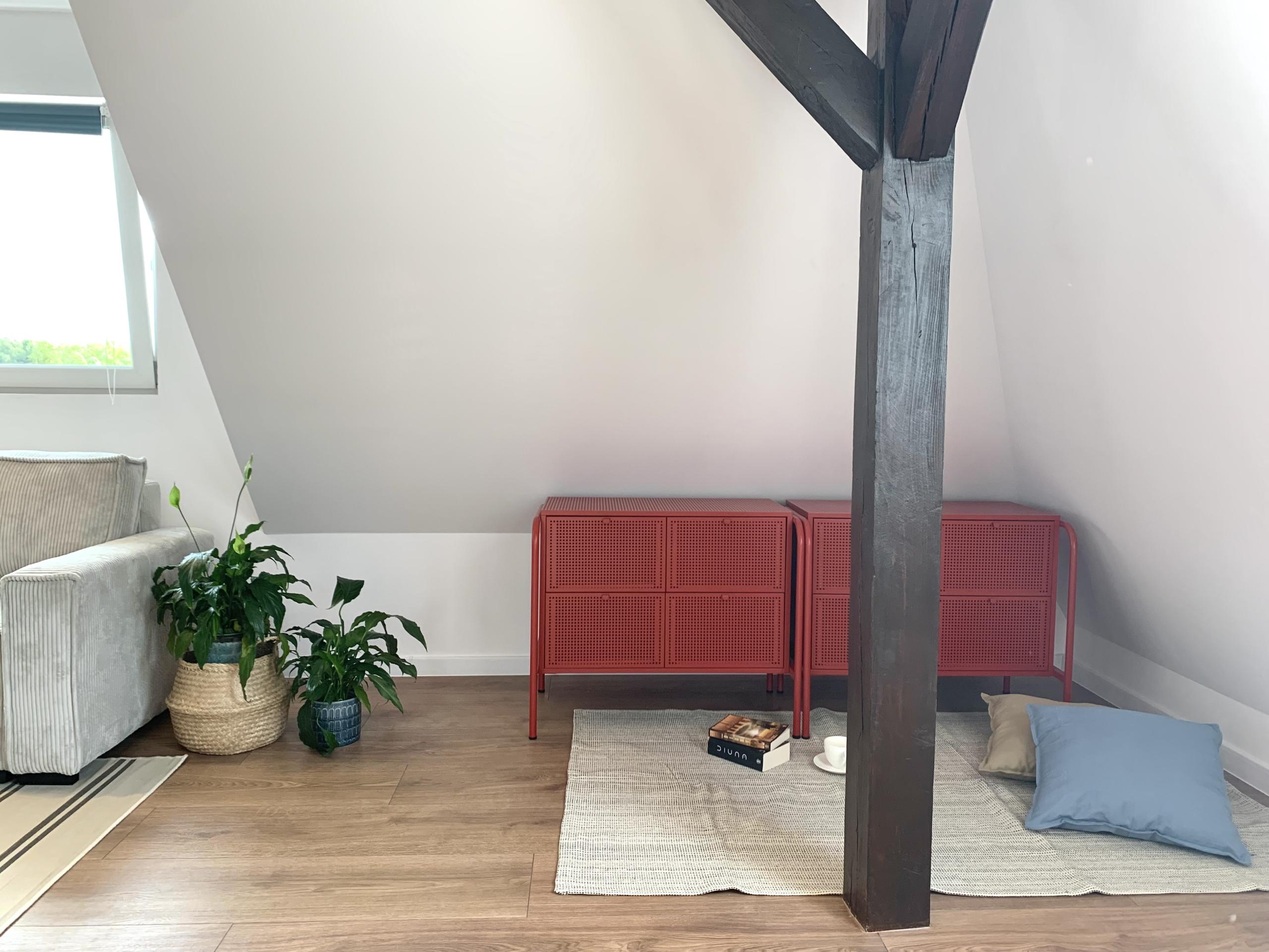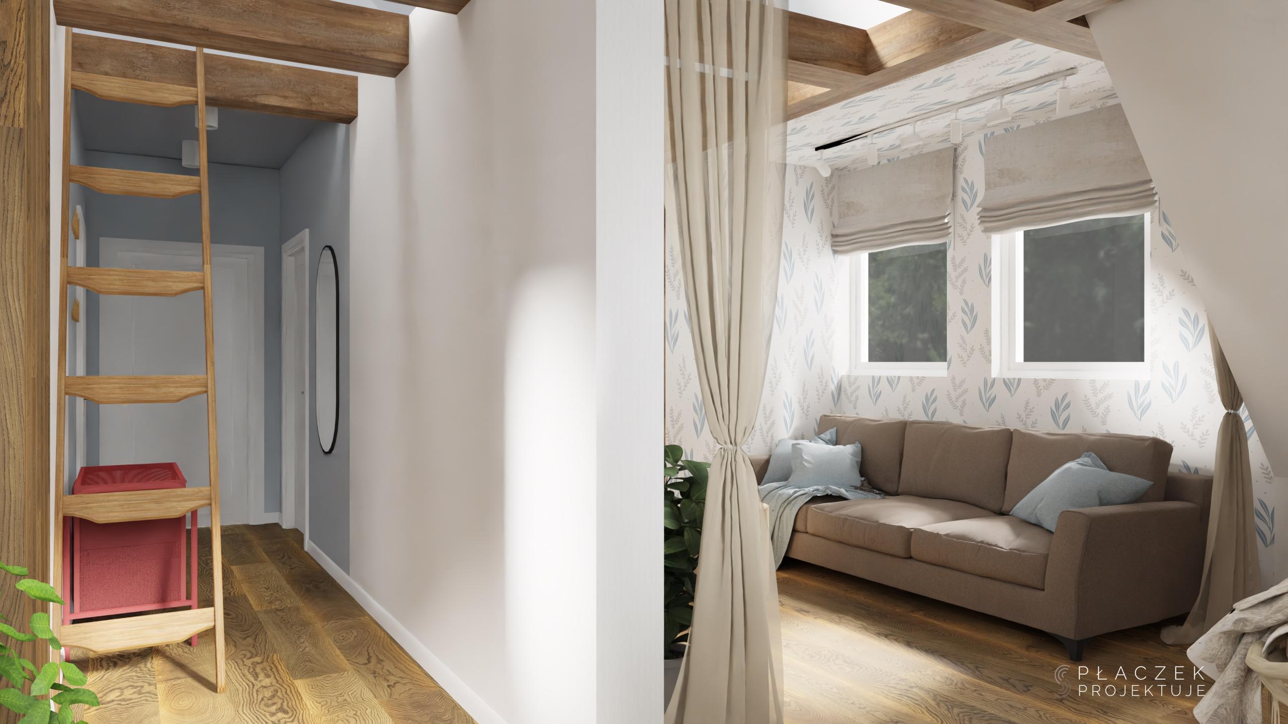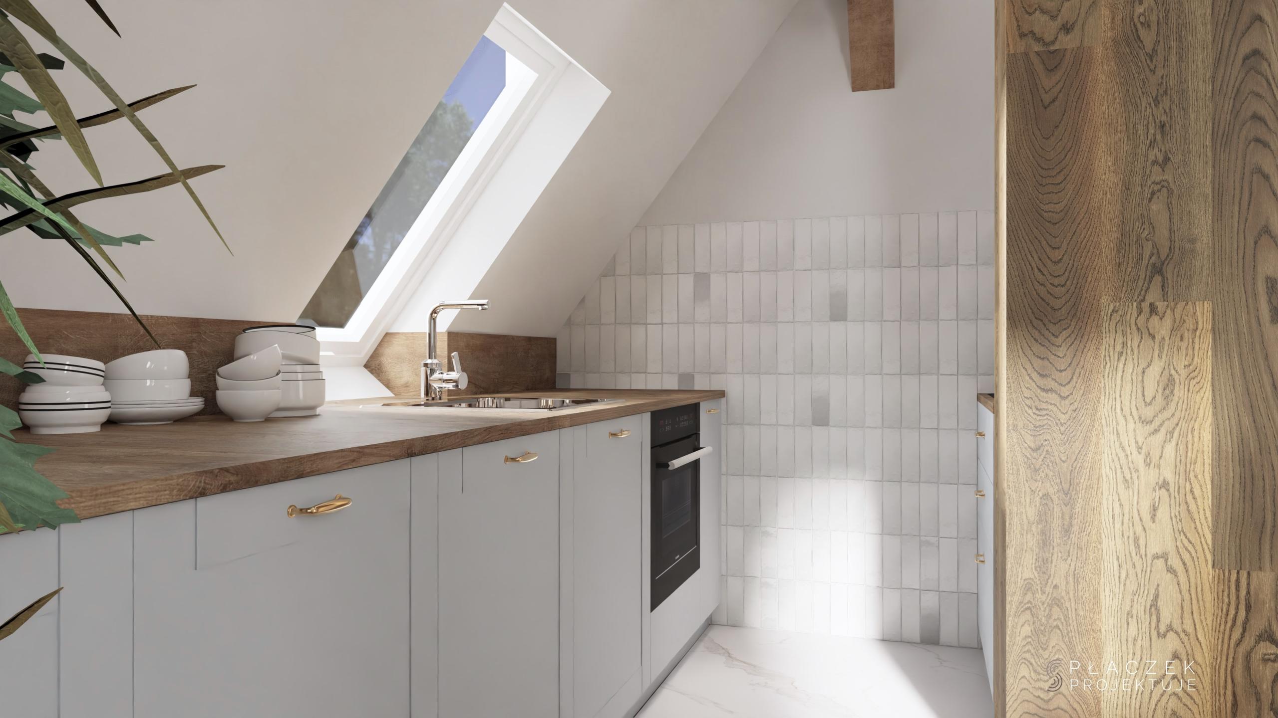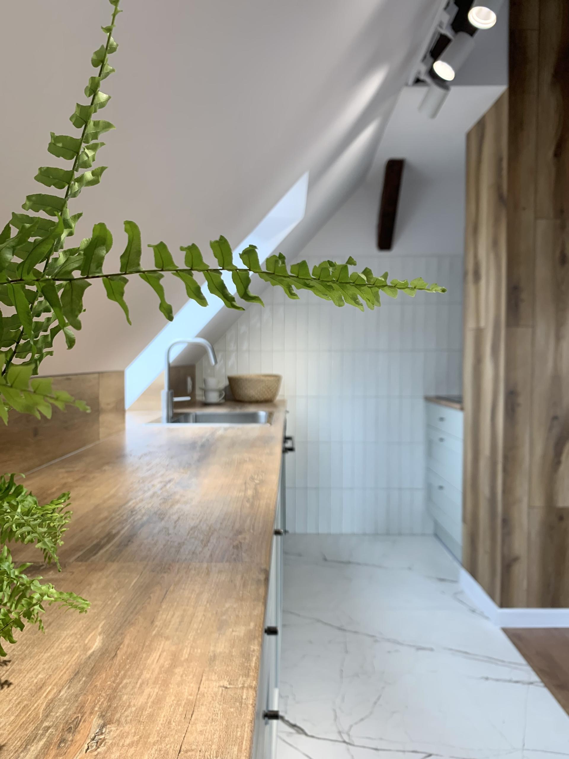 Mieszkanie na poddaszu Słupskiej kamienicy – Klimatyczny apartament przeznaczony na wynajem długoterminowy. W aranżacji skupiłam się na wyeksponowaniu rustykalnych elementów wystroju i połączeniu ich z nowoczesnymi meblami. Natomiast dzięki zmianie układu pomieszczeń i otwarciu przestrzeni powstało funkcjonalne i przestronne wnętrze.