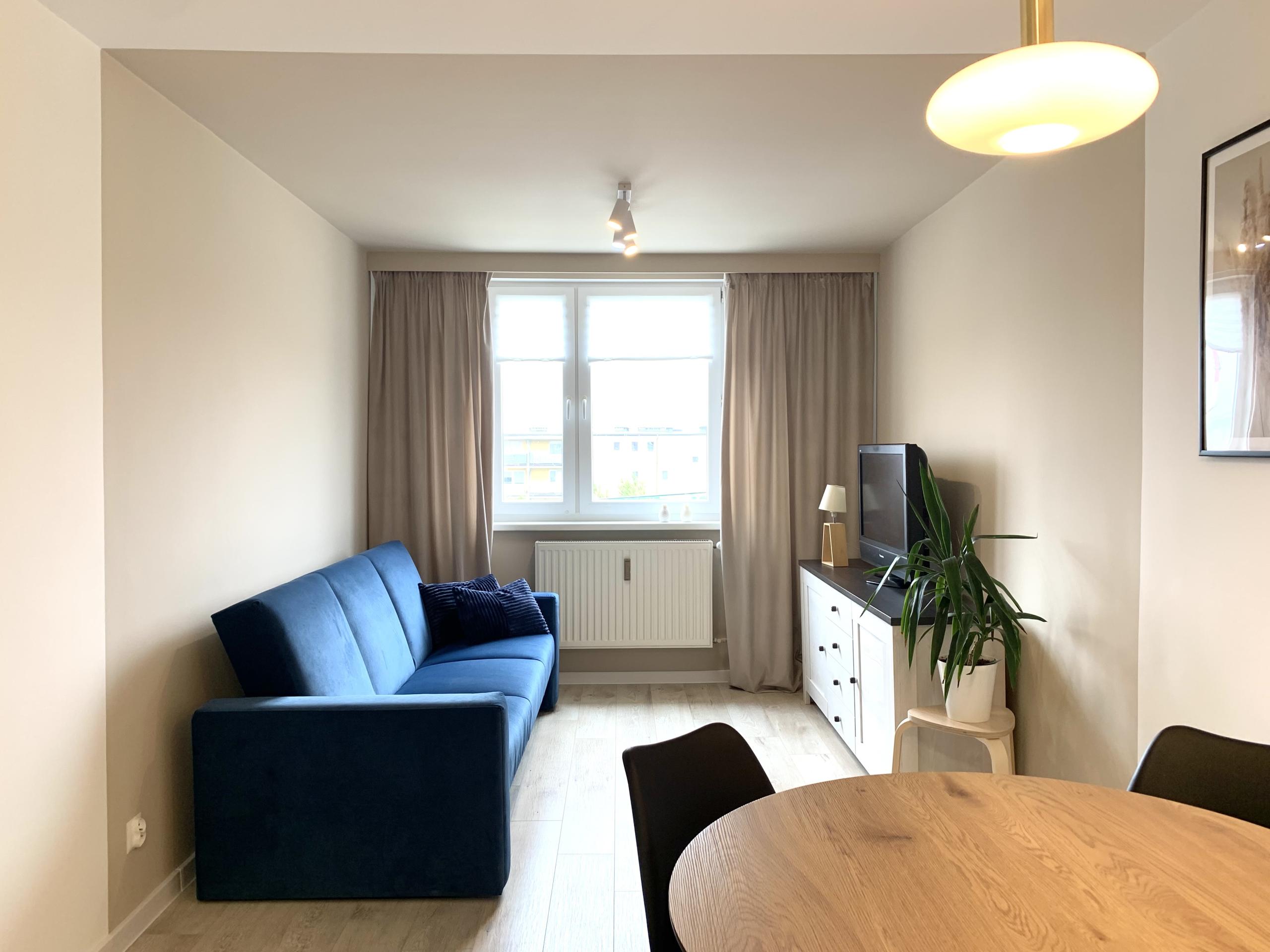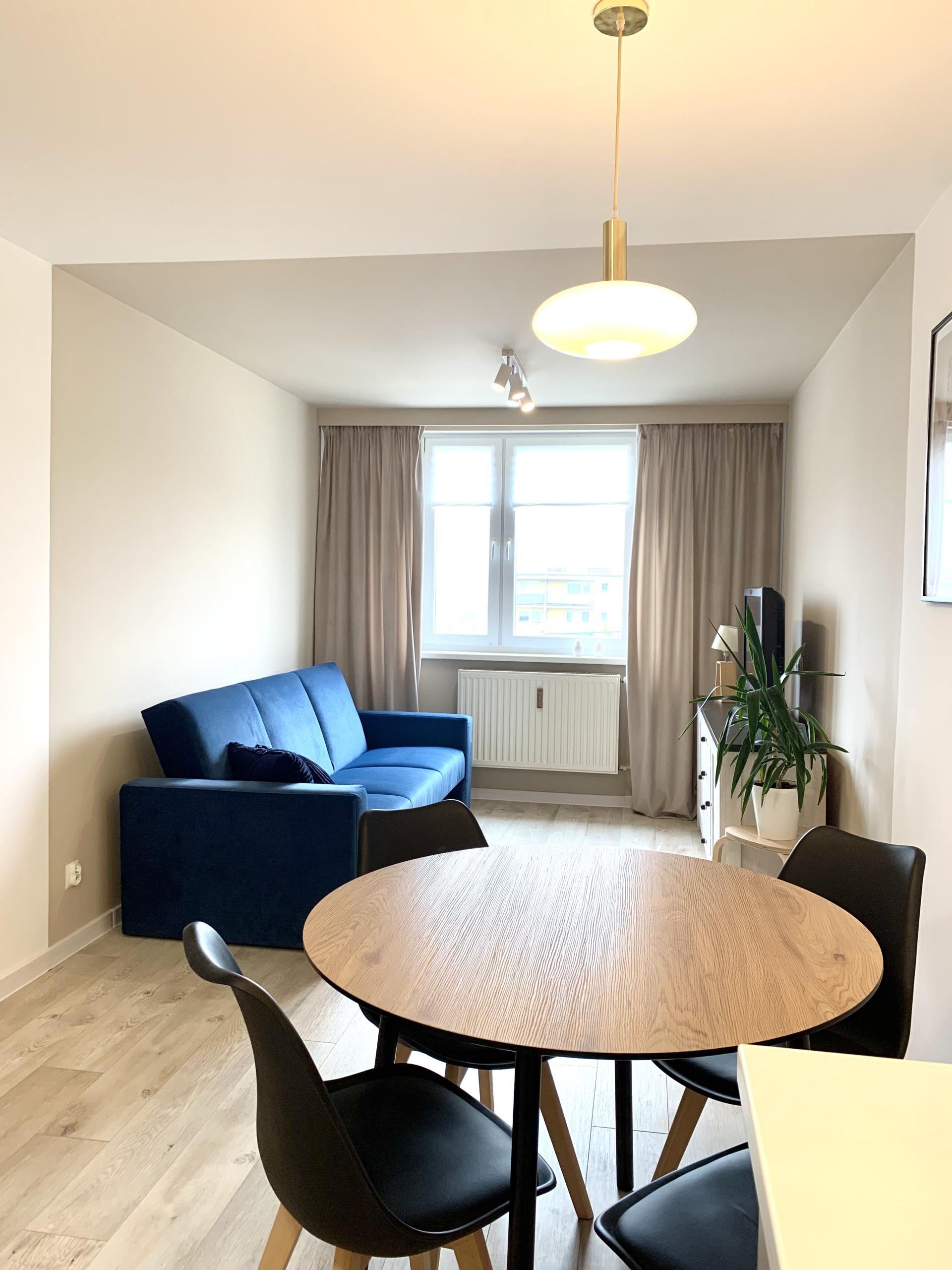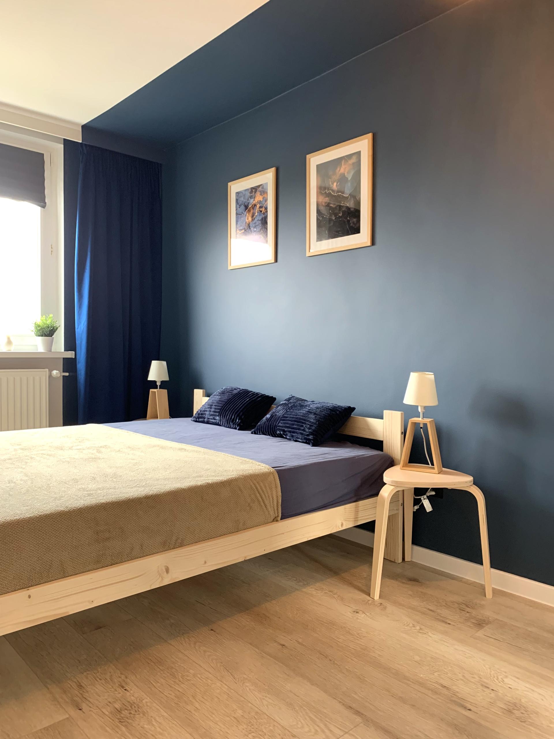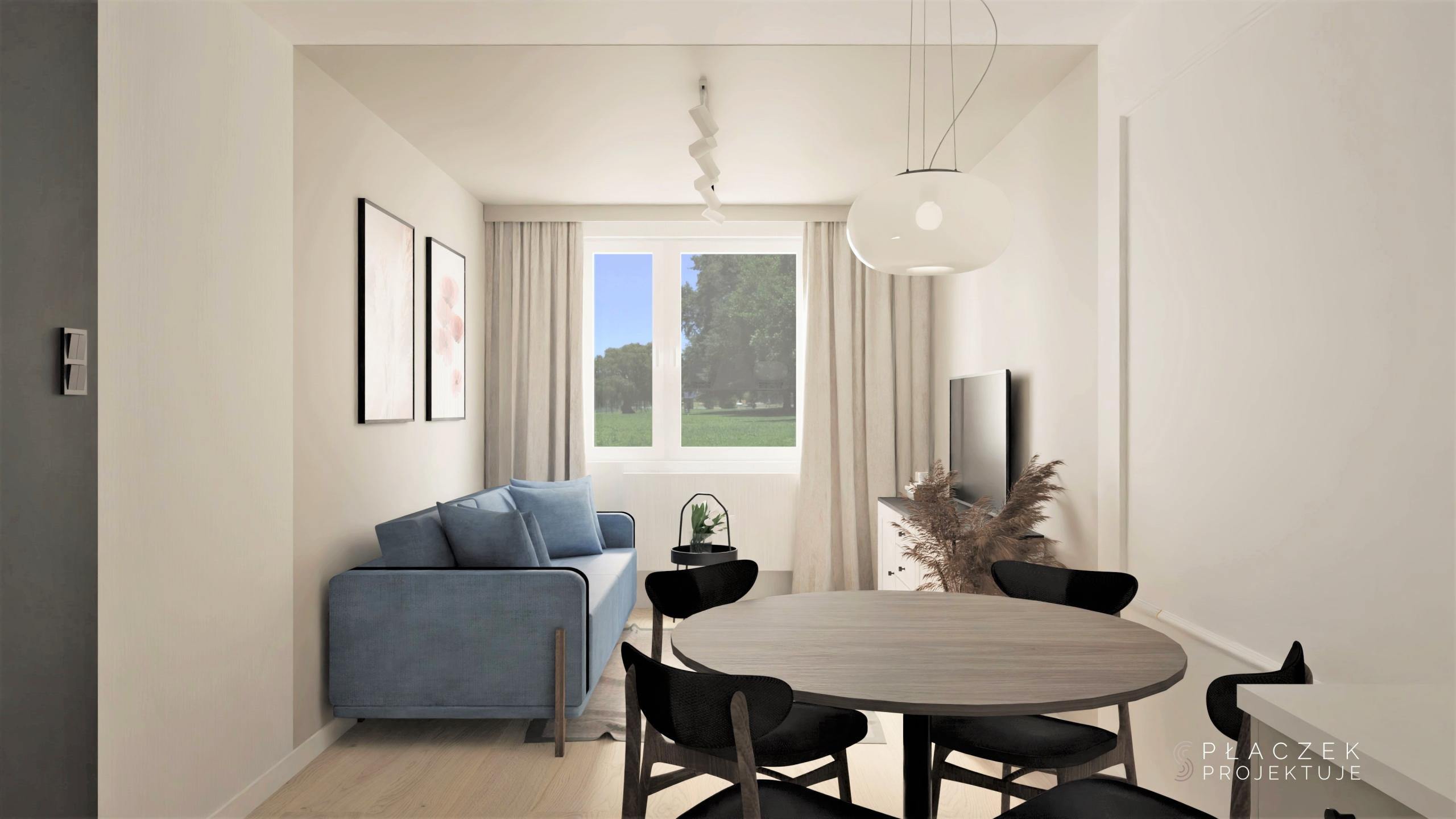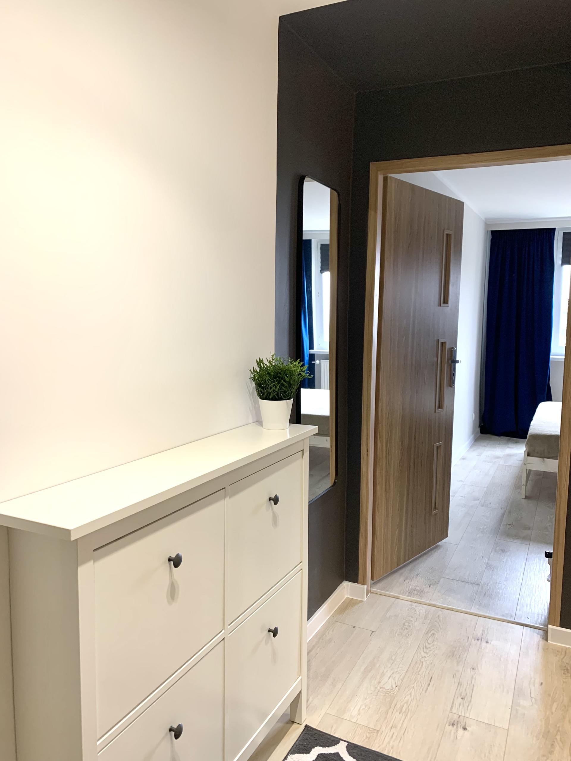 Mieszkanie w niskim budżecie. Tu istotna była kontrola wydatków, dlatego zostały wykorzystane posiadane przez Inwestorkę meble. Dzięki zaś kreatywnemu zastosowaniu farby jako elementu dekoracyjnego, powstało przytulne i bardzo estetyczne mieszkanie przeznaczone na wynajem długoterminowy.